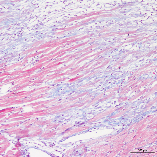 丽春红酸性品红-苯胺蓝染色,是用于检测动物组织中胶原纤维的一种染色方法之一,能够将胶原纤维染成蓝色,肌纤维、和红细胞呈红色,可用于鉴胶原纤维和肌纤维;并显示各种组织胶原纤维含量及纤维化程度。