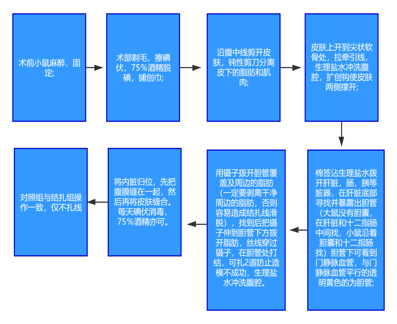 通过手术结扎胆总管的方法,模拟临床上由于胆汁淤塞引起的肝疾病。