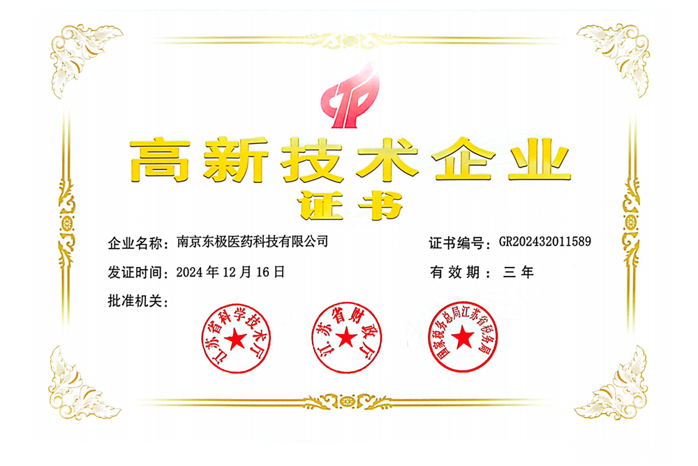 子公司东极医药被认定为“国家高新技术企业”